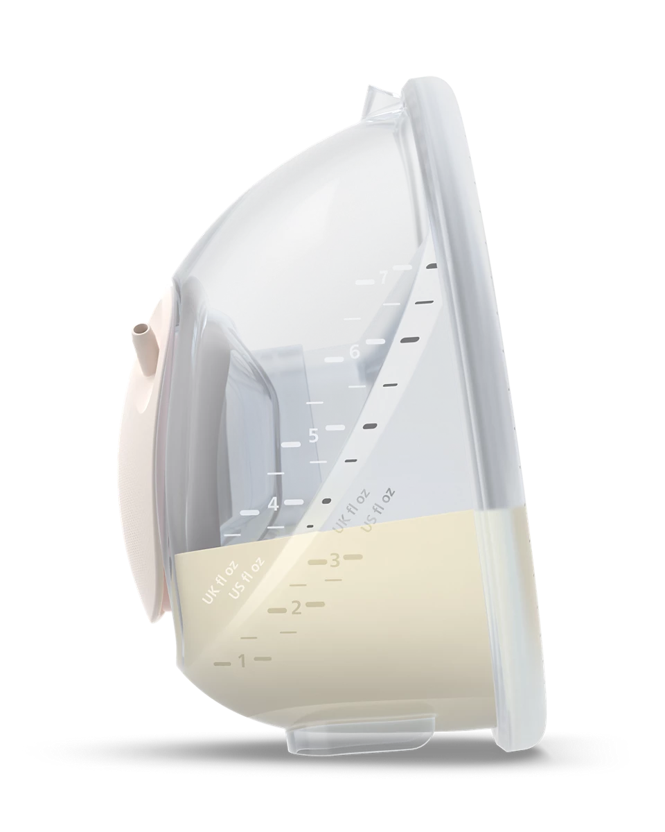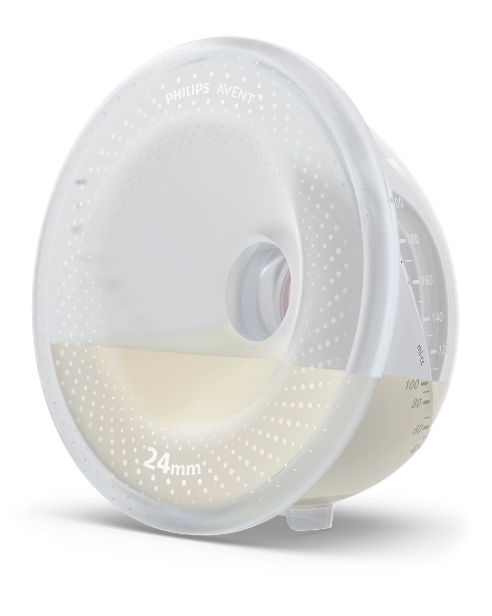 Prozirne čašice za prikupljanje pružaju neometan pogled unutra. Pomažu vam pravilno postaviti bradavice kako bi se postigao najbolji izlaz mlijeka i kako biste mogli vizualno pratiti količinu izdojenog mlijeka. Za pouzdano izdajanje od prve do posljednje kapi.