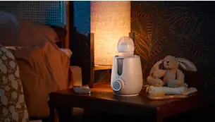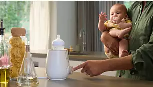 Bez preispitivanja. Učinite dnevna i noćna hranjenja lakšima i sigurnijima znajući da se uređaj po dovršetku rada automatski isključuje te da bočicu do 60 minuta održava na temperaturi za hranjenje.